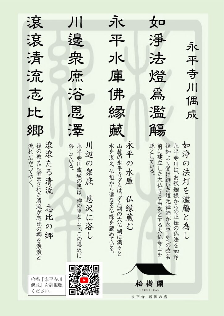 『永平寺川偶成』 (前作第19作『永平寺川』の歌詞も以下括弧で示しました。)